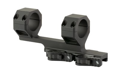 The AD-DELTA-C-H mount is made for putting high power glass onto a flattop style AR-15. The AD-DELTA-C-H is a cantilever scope mount with 2″ of eye relief built in and high 1.93″ height ideal for use with NV or gas masks. Ring spacing is 4.4″. It is precision machined from 6061 T6 aluminum and finished in hard coat T3 Mil-Spec anodize. This mount features horizontal split rings and the Patented QD Auto Lock Lever system to accommodate both in spec and out of spec rail systems.