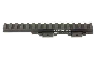 A/T Optic Riser 525-10×5 is approximately 6-1/8″ long and offers a cantilever section for applications where the end user desires to run an attachment or optic over the handguard while avoiding ‘bridging’ the optic from the upper to the handguard. This riser has 10 recoil slots on the main body, and 5 on the cantilever section for a total of 15 slots (16 lugs). Optimized for close combat ranges, the BCM A/T Riser creates a platform that raises the centerline of attached optics and magnifiers by 0.525 inches which raises typical lower 1/3 optics to approximately 2.16 inches height and absolute co-witness optics to approximately 1.93 inches height. This additional height enhances the trained end user’s situational awareness, and further, makes it possible for them to take better aimed shots if they are using the optic in conjunction with night vision or other PPE systems.
