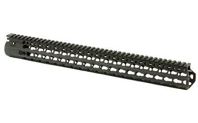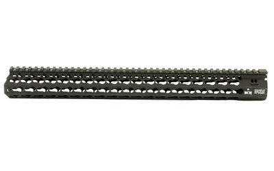 Bravo Company’s BCM KMR ALPHA 17″ KeyMod Free Float Handguard is manufactured from aluminum that is lightweight yet durable. It also features a proprietary patent pending mounting indexing and lock up system that mitigates 12:00 rail movement under heat generated from the barrel nut. Inner diameter is 1.3 inches and the outside is 1.5 inches flat to flat. The handguard flares forward (towards muzzle end) at the 3 and 9 O’clock positions approximately 1/4 inch and the actual length when measured to flare is 10.5 inches. The KeyMod interface system was developed by Eric Kincel (now the Director of BCMs’ product development team) to work in parallel with the current picatinny system. In many applications it will advance modularity past the current 1913 rail system. The BCM KMR Alpha also allows for a larger range of modularity offering 4 different offset mounting positions between traditional 3, 6, 9 and 12:00 positions. In the most basic of applications the KeyMod system allows for universal modularity between various manufacturers of accessories and accessory rails. A big win for the trigger puller.