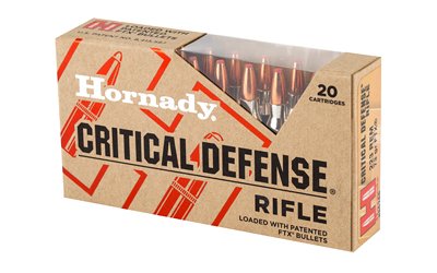 Designed for short-range defensive situations, a new breed of FTX bullets are at the forefront of the Critical Defense Rifle ammunition line. The bullet’s patented Flex Tip not only helps keep the nose cavity free from clogging as it passes through heavy clothing but also helps the bullet expand at low velocities.