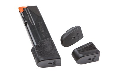 Factory 17-round steel magazine for the P365-XMACRO pistol. This magazine includes rear witness holes to confirm loaded capacity and an orange follower making it easy to identify when unloaded. Sig Sauer also includes two additional interchangeable floor plates to accommodate the grip length differences of the P365, P365X, and P365XL. It comes configured for the P365-XMACRO.