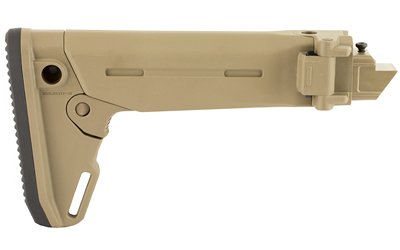 The Magpul Zhukov-S Stock is a no-compromise folding stock for the modern AK. The Zhukov-S Stock casts aside traditional AK stock shortcomings and offers a folding, collapsible stock with QD sling mounts, modular Cheek Risers, and a shock-absorbing rubber butt-pad for superior traction. The Zhukov-S has right-side folding for compatibility with side-mounted optics. Designed to fit most common stamped AK receivers without modification via a unique wedge block, the durable injection molded polymer Zhukov-S Stock redefines the human interface with the AK platform. Made in U.S.A. Stock counts as one US compliance part for 922(r).
