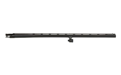 28″ All-Purpose barrel with vent rib, dual bead sights, smoothbore, and blued finish. Includes Accu-Choke set (Improved Cylinder, Modified, Full) and choke tube wrench. Compatible with 12 Gauge Mossberg 500 and Maverick 88 6-shot models.